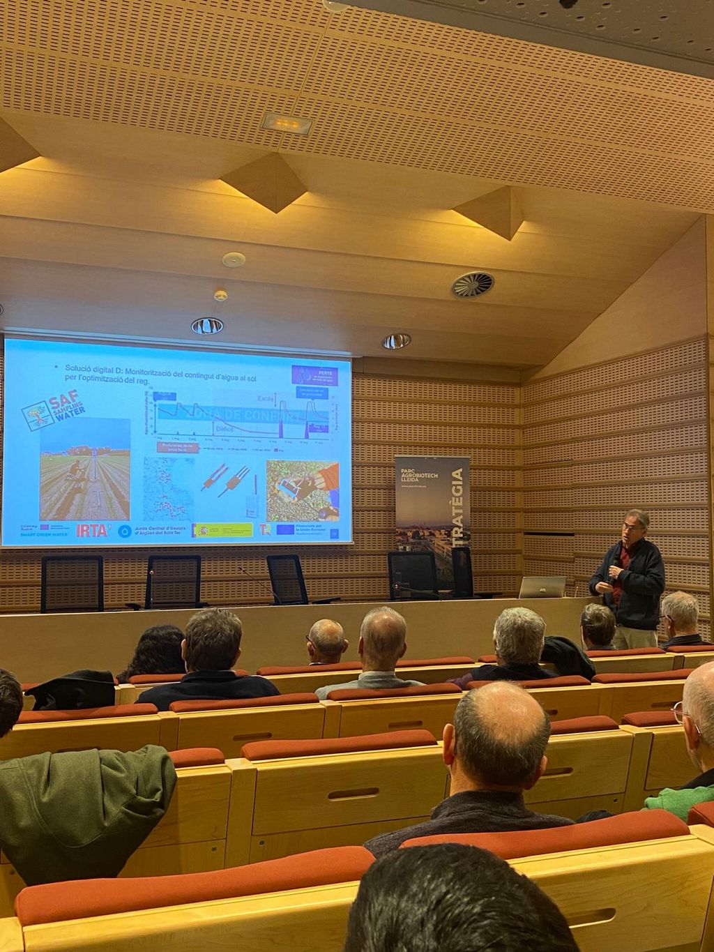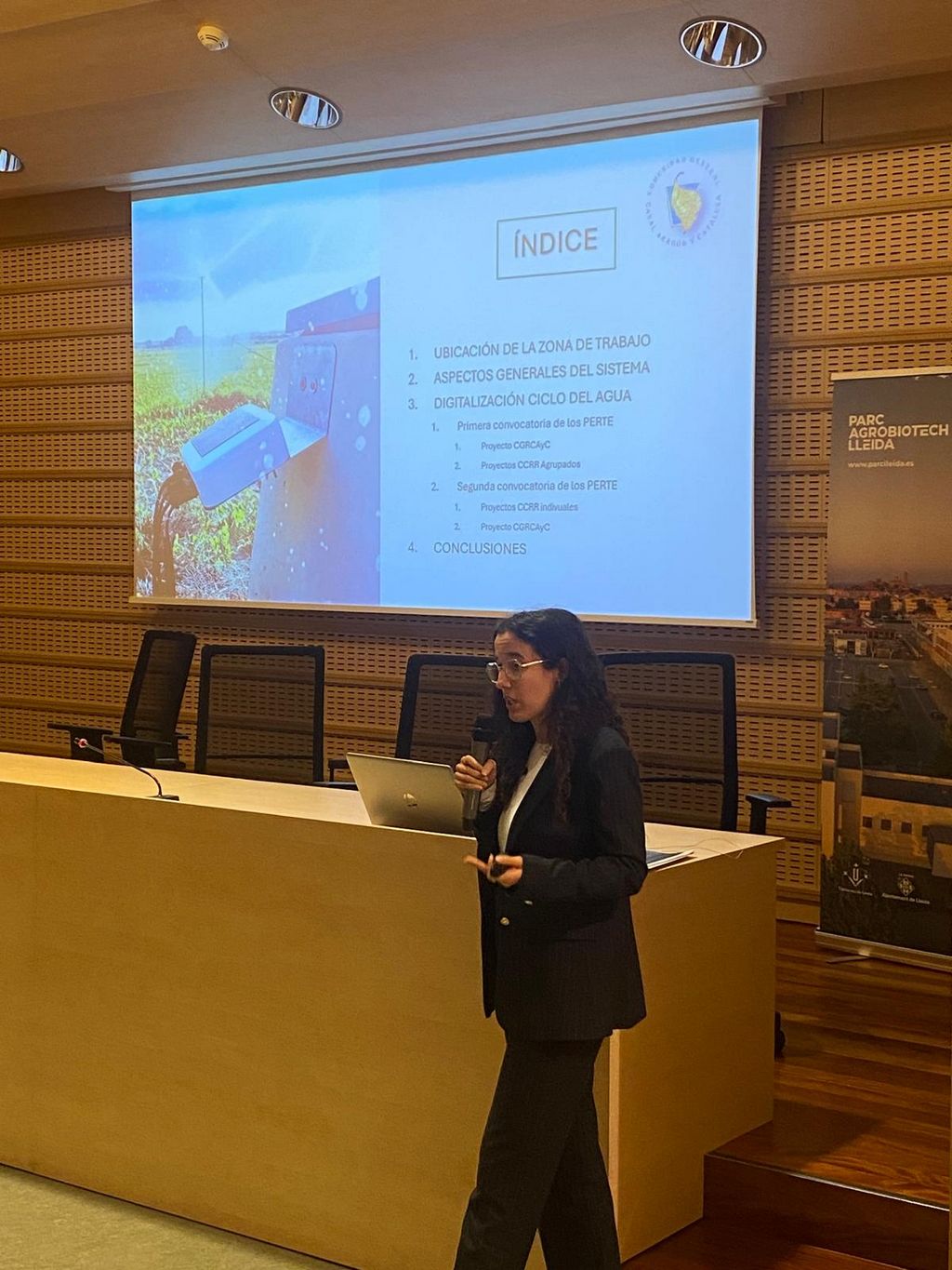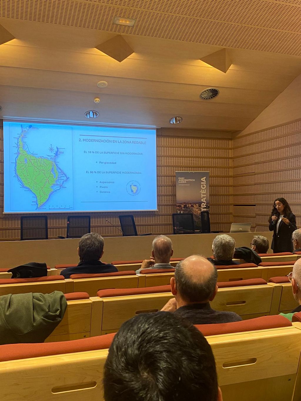 La apertura de la jornada corrió a cargo de Antonio Enjuanes, Subdirector General d'Infraestructures Rurals del DARPA y de Miguel Ángel Prats, Presidente de ACATCOR (Associació Catalana de Comunitats de Regants). La intervención de Inés Samperi, como técnico del departamento agronómico y medioambiental, se centró en las distintas subvenciones solicitadas y de las que ha resultado beneficiaria la CGR del CAyC, en materia de digitalización en todas las fases de gestión del agua (red de alta, red de baja y aplicación en parcela).